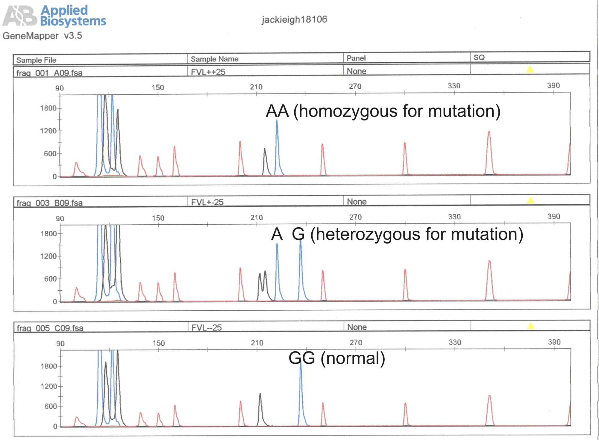 The picture shows the results of IHG diagnosis of a common blood clotting disorder (Factor V
