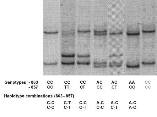 (Above) Example 2. Tumour necrosis factor a (TNF; TNFSF2) SNPs -863 C>A (rs1800630) |
